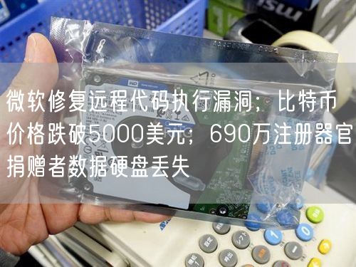 微软修复远程代码执行漏洞;比特币价格跌破5000美元;690万注册器官捐赠者数据硬盘丢失