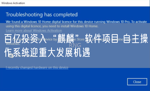 百亿投资入“麒麟”软件项目 自主操作系统迎重大发展机遇